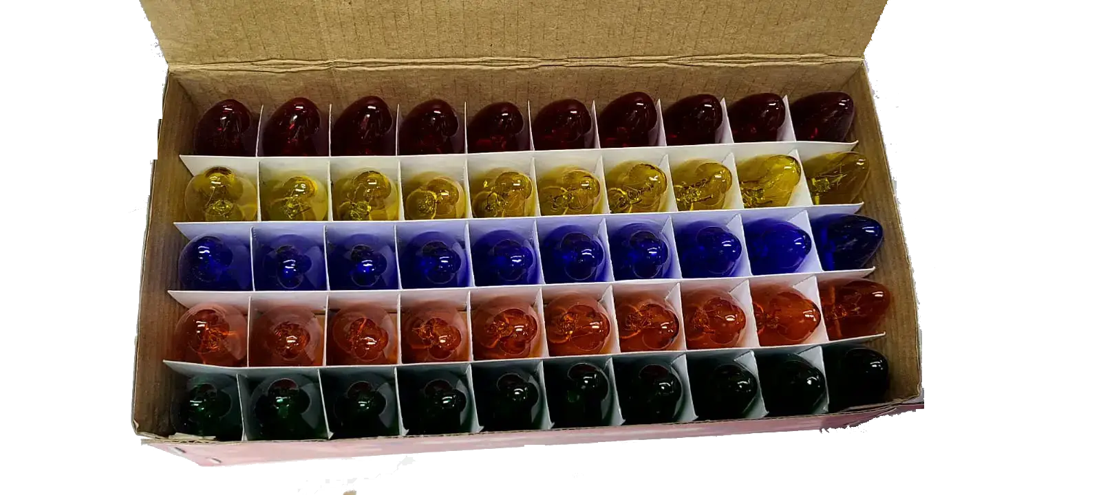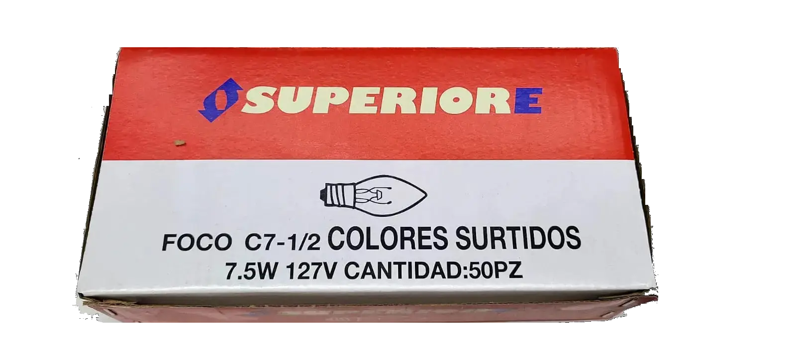 Presentaciones: Caja de 50 focos con 5 colores y transparente disponibles.