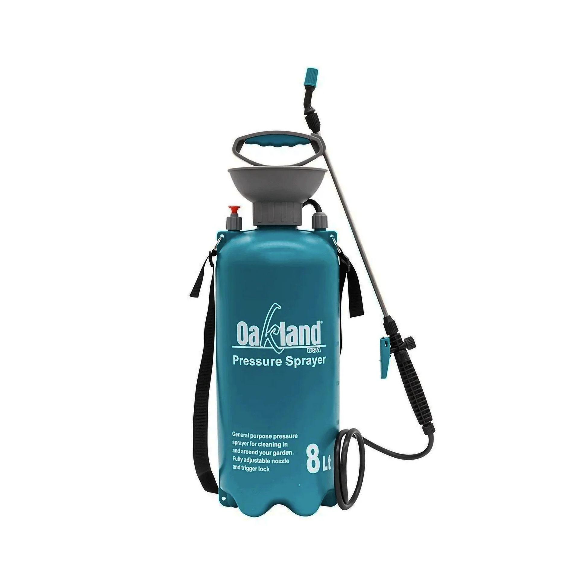 Bomba aspersor manual 8 Lts FB-0201 Oakland fumigadora manual tipo pistola de 8 lts boquilla direccionable cuenta con válvula de liberación de aire rápida asa para bombeo
