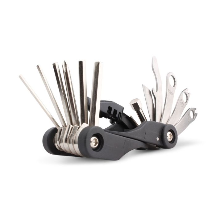 Esta herramienta es ideal para atender diversas emergencias mecánicas de su bicicleta. Incluye: Funda de tela y 17 accesorios.